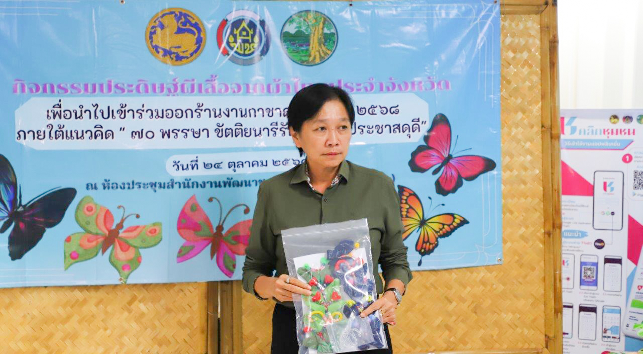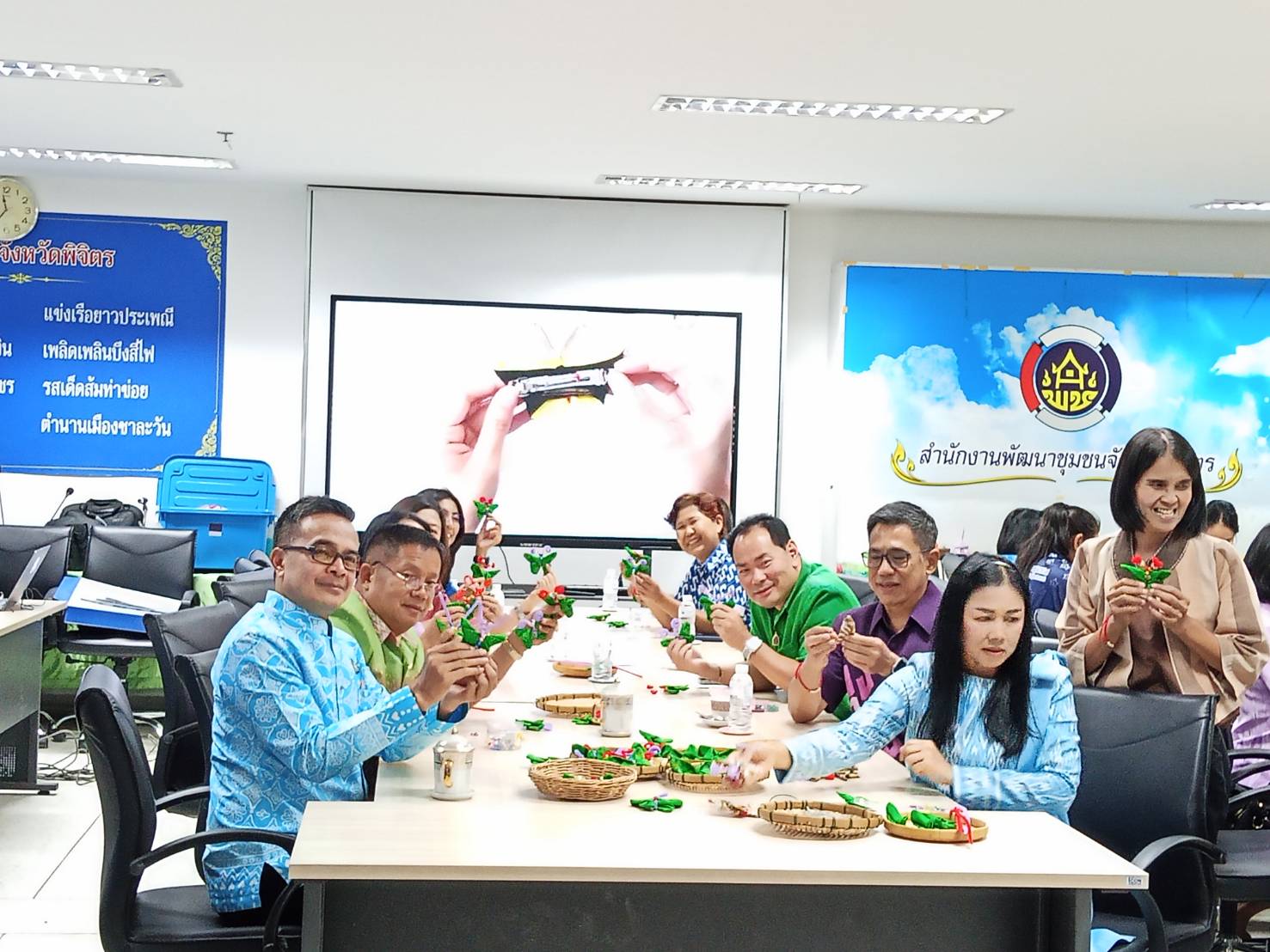 นายสมปอง หวังรุ่งวิชัยศรี อุตสาหกรรมจังหวัดพิจิตร เข้าร่วมกิจกรรมประดิษฐ์ผีเสื้อจากผ้าไทยประจำถิ่นของจังหวัดพิจิตร เพื่อนำไปร่วมออกร้านงานกาชาด ประจำปี 2568 ภายใต้แนวคิด “70 พรรษา ขัตติยนารีรัตนา ปวงประชาสดุดี”